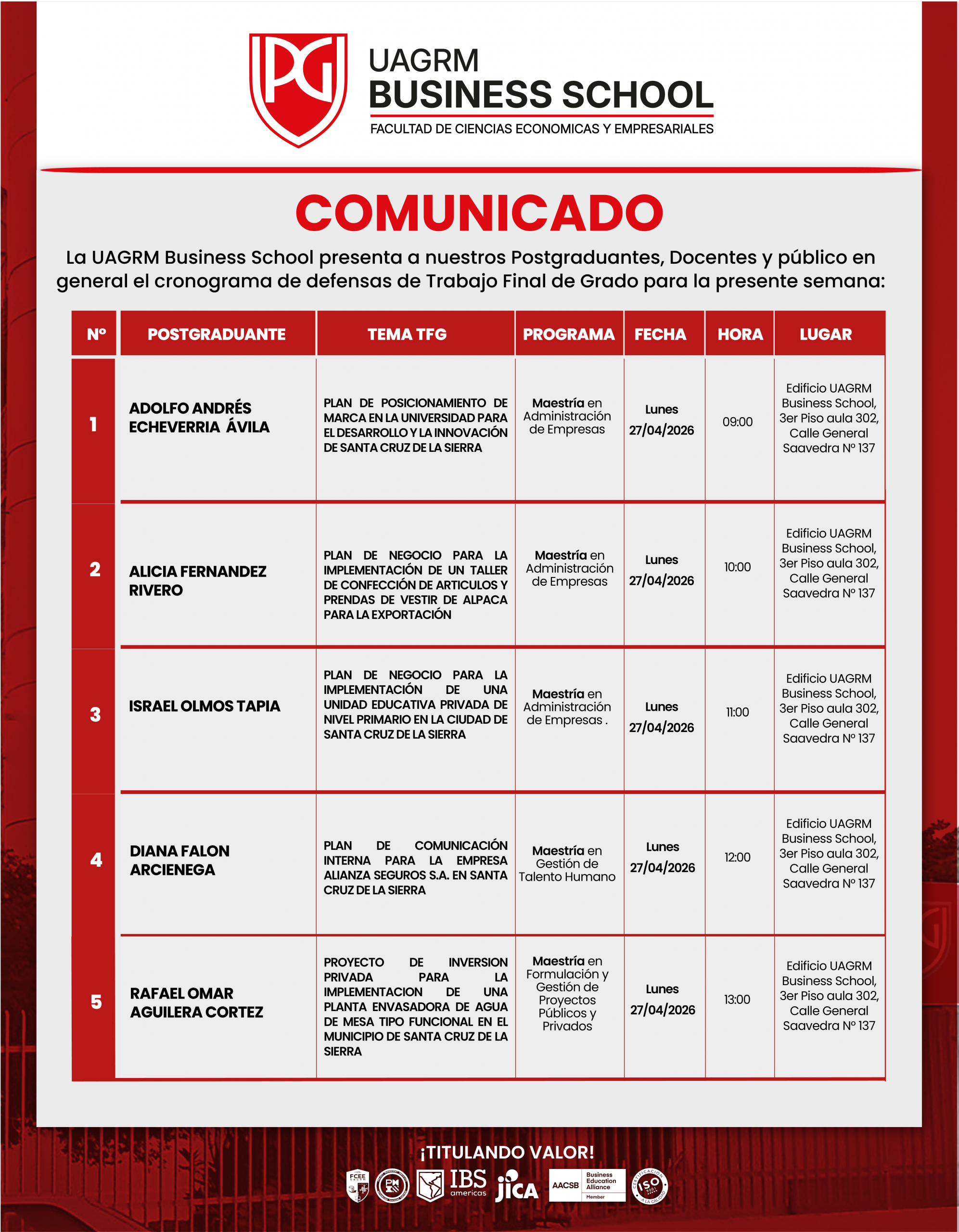 La UAGRM Business School es la escuela de negocios de la Facultad de Ciencias Económicas