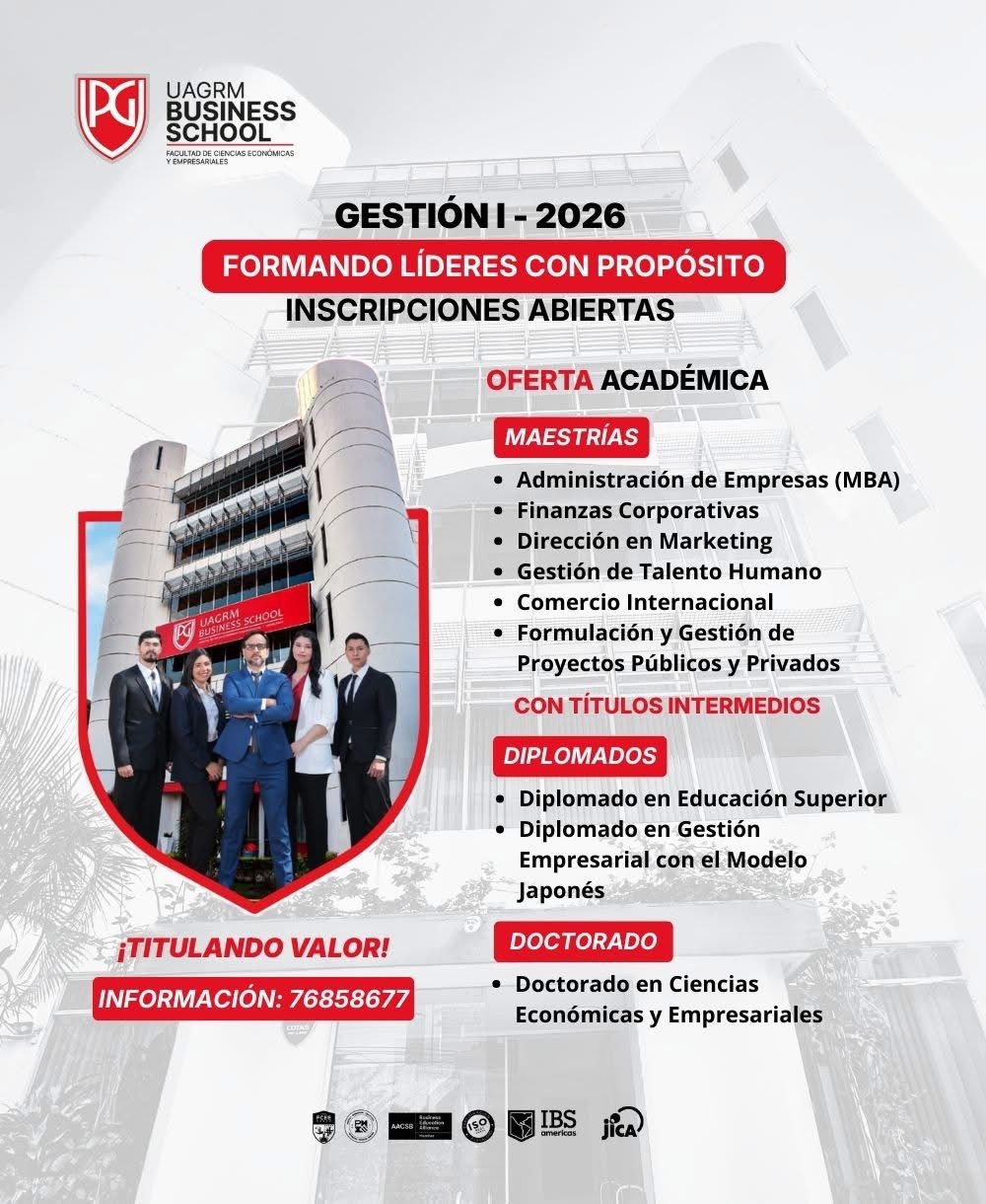 La UAGRM Business School es la escuela de negocios de la Facultad de Ciencias Económicas y Empresariales de la Universidad Autónoma Gabriel Rene Moreno que ha adoptado la filosofía de calidad para brindar servicios académicos posgraduales de excelencia bajo estándares internacionales.